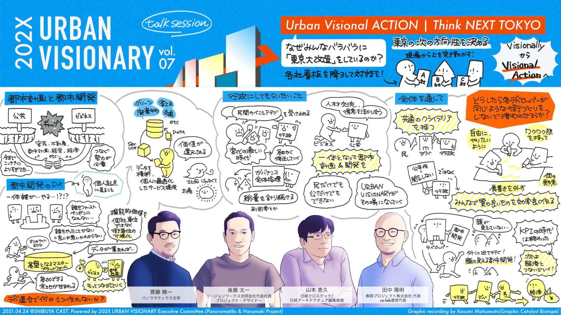 今回初となるワークショップ形式を通じて、大きな目標と行動するための指針の両方が具体的になった「202X URBAN VISIONARY vol.7」。ディスカッションでも、登壇者の背景とともに東京への思いがいっそう浮き彫りになる回となりました。