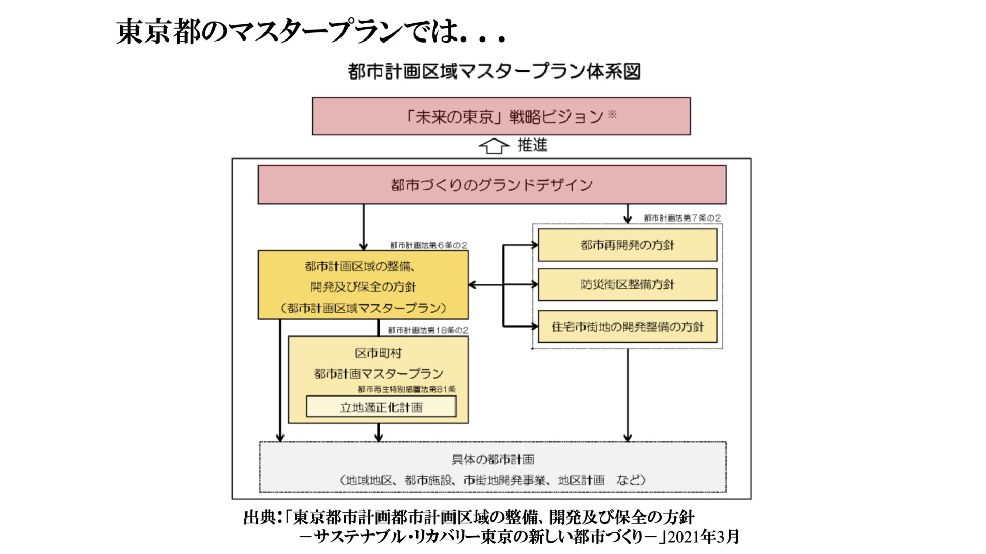 そうした点を踏まえて、東京のマスタープランの体系を表しているダイアグラムで、東京都のマスタープランの考え方をみてみたいと思います。