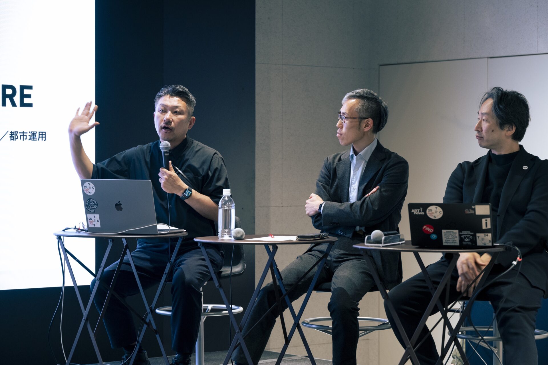 司会進行をつとめたのは、前回に続いてパノラマティクスの齋藤精一さんです。「202X URBAN VISIONARY」を立ち上げ、現在も事務局として関わる春蒔プロジェクトの田中陽明さんから挨拶があったように、「202X URBAN VISIONARY」は渋谷キャストの周年祭の一環として企画されました。今回は新たな顔ぶれも多く、事業者として東急から寄本健さんと田邊秀治さん、東急不動産から城間剛さんと池田祐一さん、三菱地所から菱田和宏さんが登壇しました。そして昨年に引き続き、今回も東京の街を舞台に繰り広げられるクリエイティブを中心としたファッション・デザインの祭典『TOKYO CREATIVE SALON 2025』(TCS)との共催というかたちで開催。ハードとソフトを繋ぐ都市型イベントをどのように活用できるのかについて、建設的な議論がなされる回となりました。