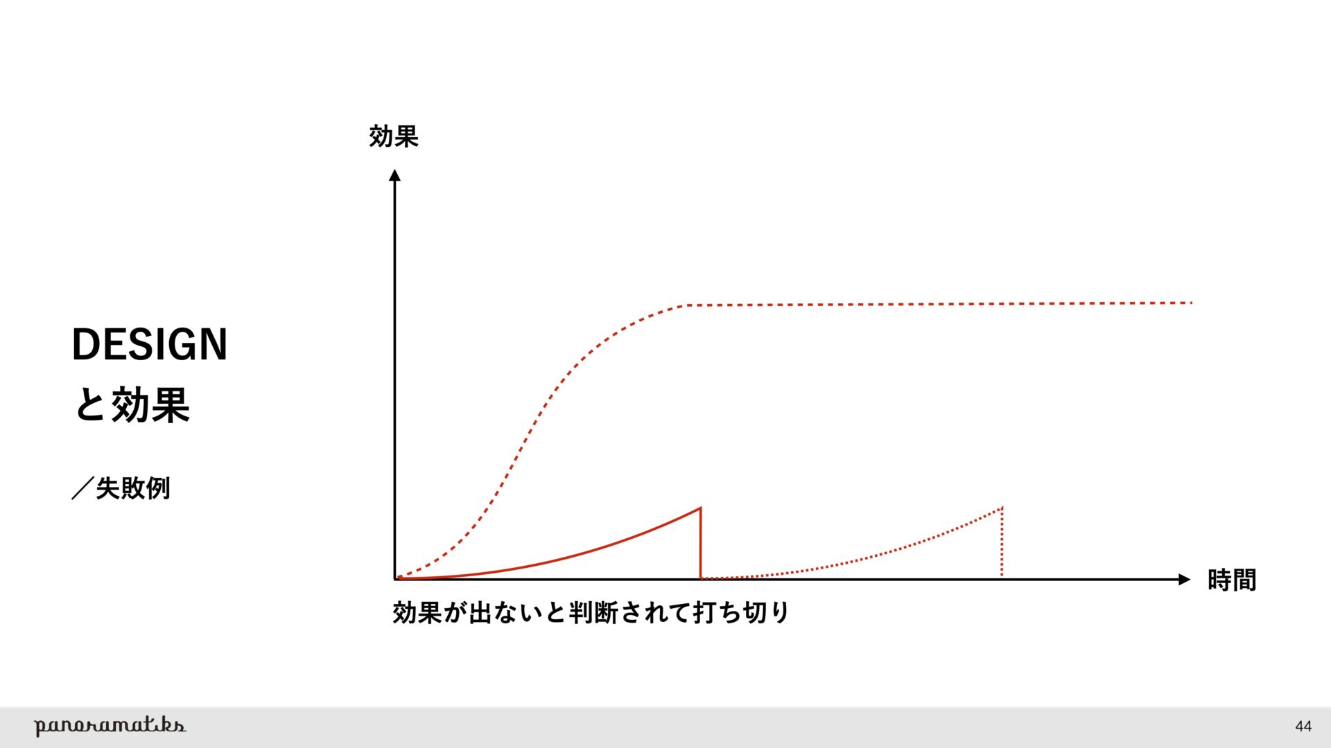 齋藤さんは、オフィスなど不動産の坪単価や稼働率の低下が危惧されるなかで「経年で何かしら上がっていく要素が必要」といい、そのためにはエリマネが関わること、また文化と開発が両軸で歩むことの必要性を示唆します。例えば、LEED認証・WELL認証などの環境認証制度をハード面で取得しても、運用で投資し続けないと片手落ちになります。文化面では「Bコープ(B Corp:社会や環境に配慮した公益性の高い企業に対する国際的な認証制度)」のような「都市開発版Bコープ」が必要ではないか、と訴えました。指数関数的な効果は通常は起こり得ず、時間と投資効果を示す図のように、坪単価が下がっていくときに投資することでまた上がることを継続するしか道はないのではないかと投げ込み、意見を仰ぎます。